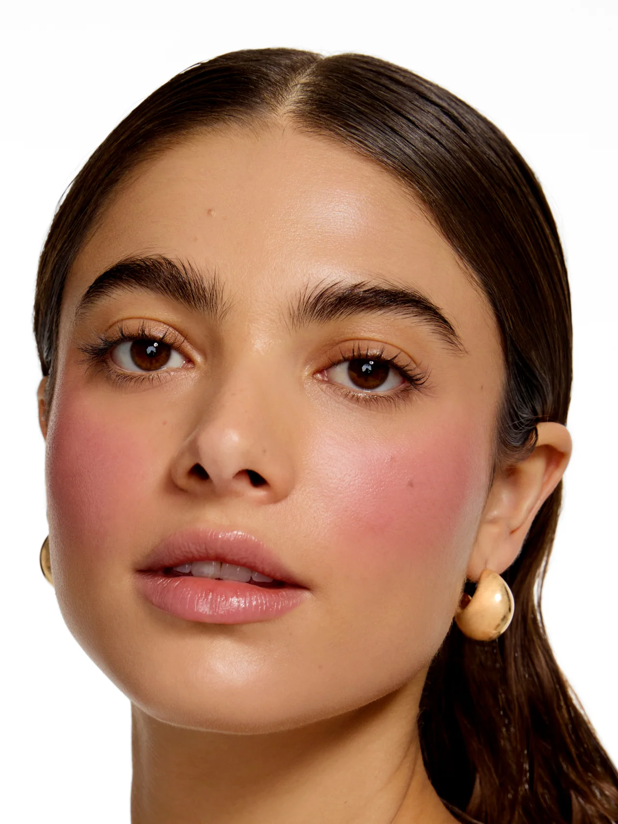• Use the doe-foot applicator to place a small drop of liquid blush onto the center of the cheek.