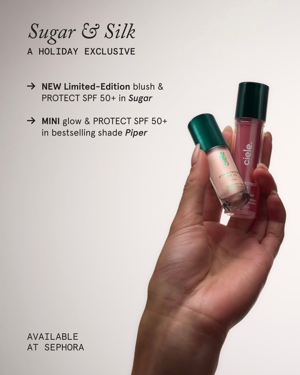 • blush & PROTECT SPF 50+ a hydrating liquid blush that gives your cheeks the perfect flush of color in LIMITED EDITION shade, Sugar.